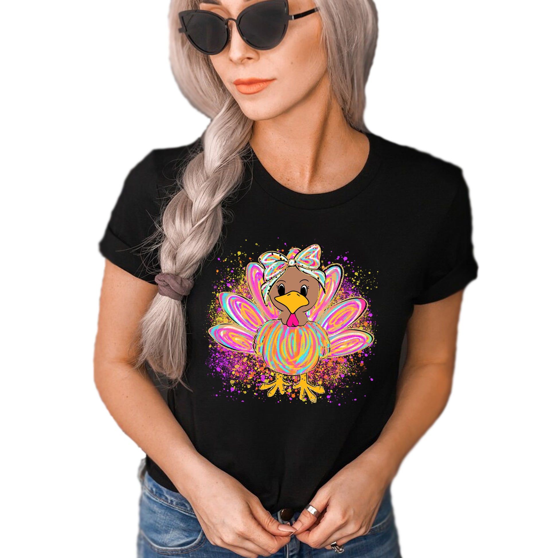 Colorful Girl Turkey, Thanksgiving Day T-Shirt, Short Sleeve Unisex Casual
