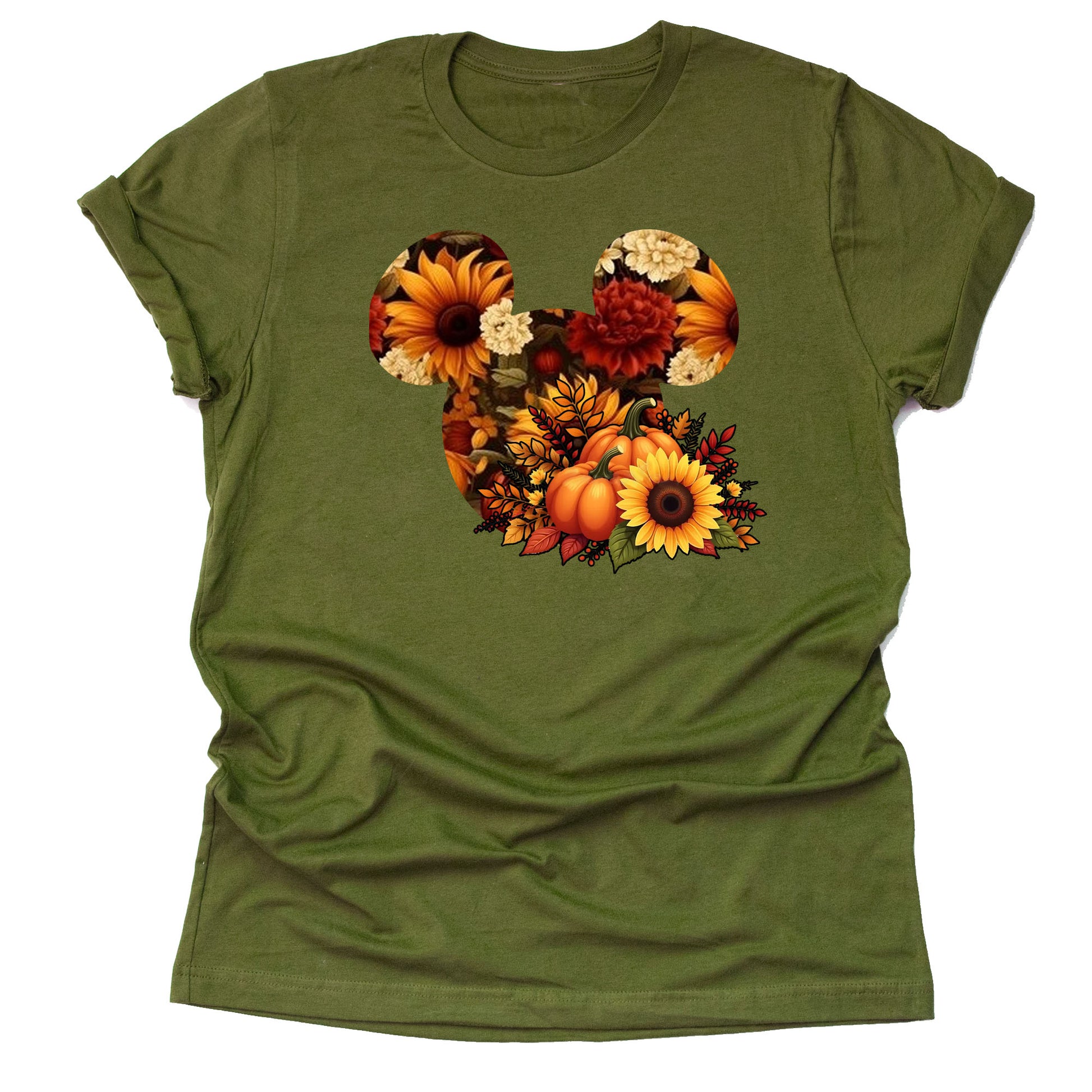 Mickey Sunflower Autumn Pumpkin T-Shirt – Thanksgiving Graphic Tee, Sunflower-Inspired Unisex Short Sleeve