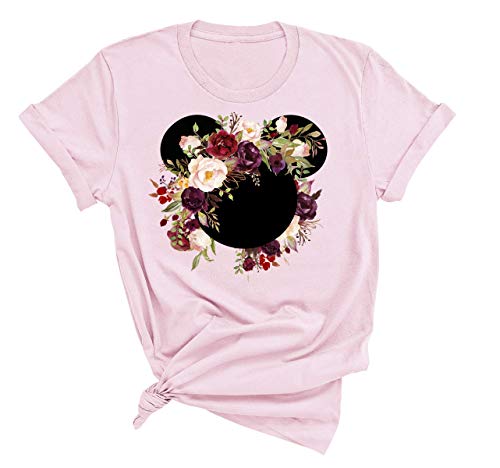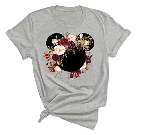 Womens Mickey Flower Shirt, Floral Burgundy Wreath T-Shirt Adult Women Ladies Boho Character Shirt